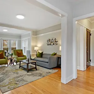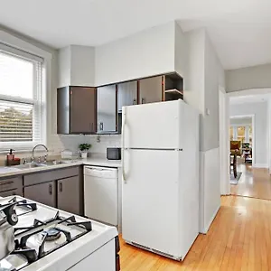 The apartment lies in Ravenswood with indie housewares, gift, and fashion stores on North Damen and North Lincoln avenues, within a minute's drive of Lincoln Square. The property is about a 15-minute drive from the free Lincoln Park Zoo in Chicago.